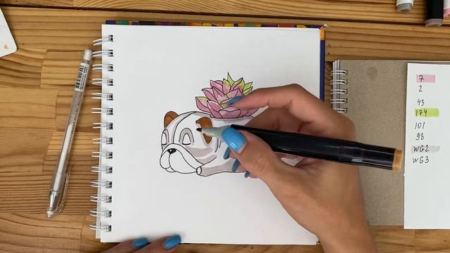 Рисунок скетч маркерами "Собакен с суккулентом" для скетчбука | Срисовка картинки для начинающих