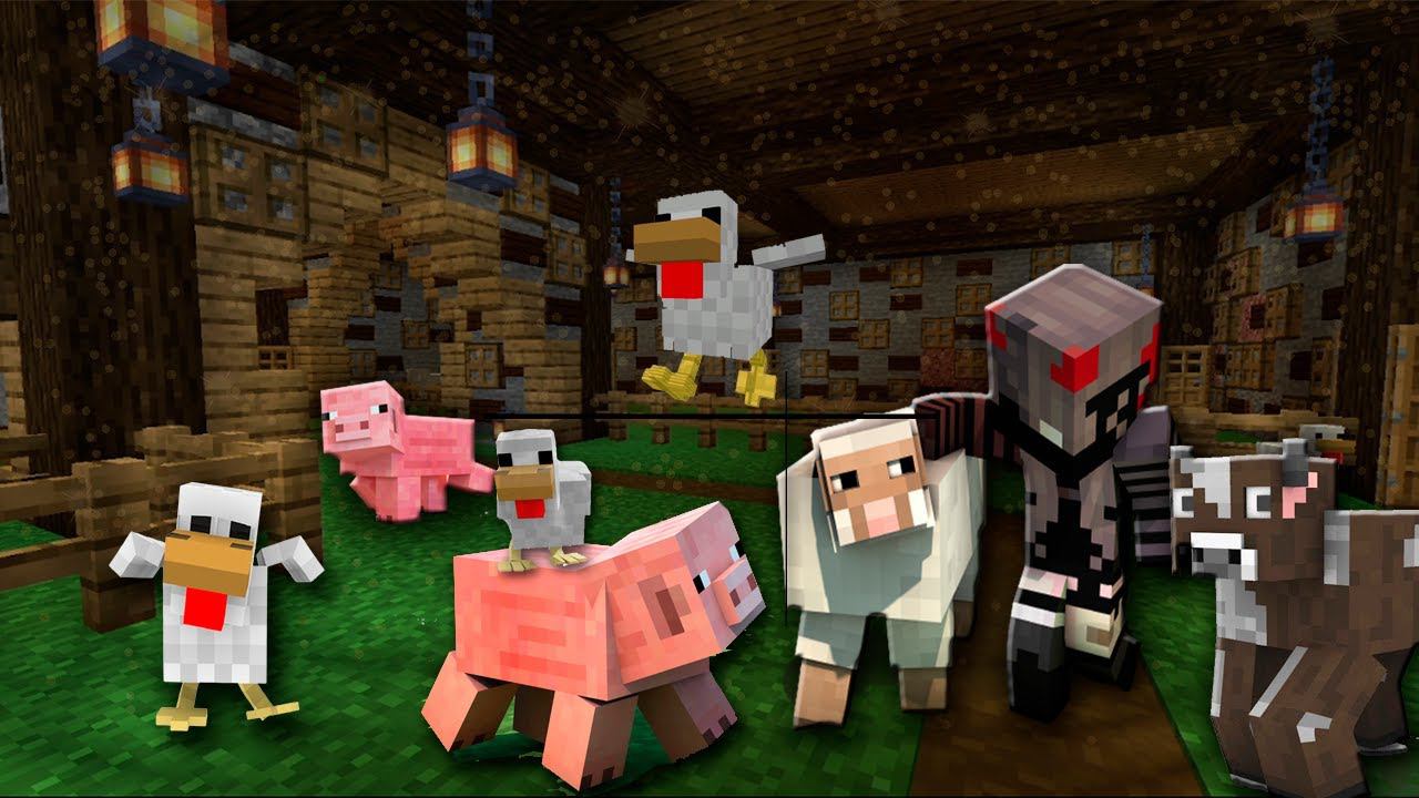 Виживаю в ущелье в Майнкрафт.Построила ферму животных . ( Minecraft )