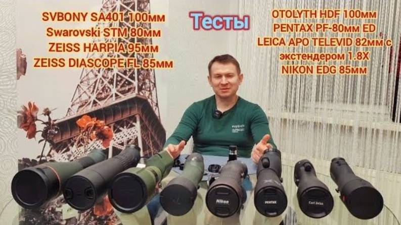 Тесты SVBONY SA401 100мм Swarovski STM 80мм ZEISS HARPIA 95мм ZEISS DIASCOPE FL 85мм OPTOLYTH HDF 100мм PENTAX PF-80мм ED LEICA APO TELEVID 82мм с экстендером 1.8Х NIKON EDG 85мм