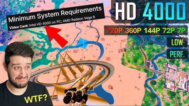 Fortnite Chapter 5 / Season 2 running on its minimum requirements graphics card: the Intel HD 4000! ⏱ Timestamps ⏱ Intro, Specs, stuff - 0:00 Warning (Flashing Lights) - 1:19 720p Performance Mode - 1:29 360p Performance Mode - 4:06 7p Performance Mode - 7:00 72p Performance Mode - 8:13 144p Performance Mode - 9:21 216p Performance Mode - 10:04 288p Performance Mode - 11:19 Conclusion - 11:46 🔧SPECS🔧 ◾️ Intel core i7 3770K @ 4.5GHz ◾️ Intel HD 4000 ◾️ RAM - 16GB DDR3 2400MHz (2x8GB) ◽️ OS - Windows 10 Pro ◽️ SSD - Crucial MX500 1TB ◾️ Motherboard - Asus P8 Z77-V LX ◾️ PSU - Seasonic GC650 ◾️ Case - my room 🎥 Recorded with a capture card and another PC for no FPS loss. ------------------------------------------------------------------------ Second Channel: @KryzzpDigimoon ▶️ ------------------------------------------------------------------------ 📸 Instagram: https://www.instagram.com/zwormz.gaming/