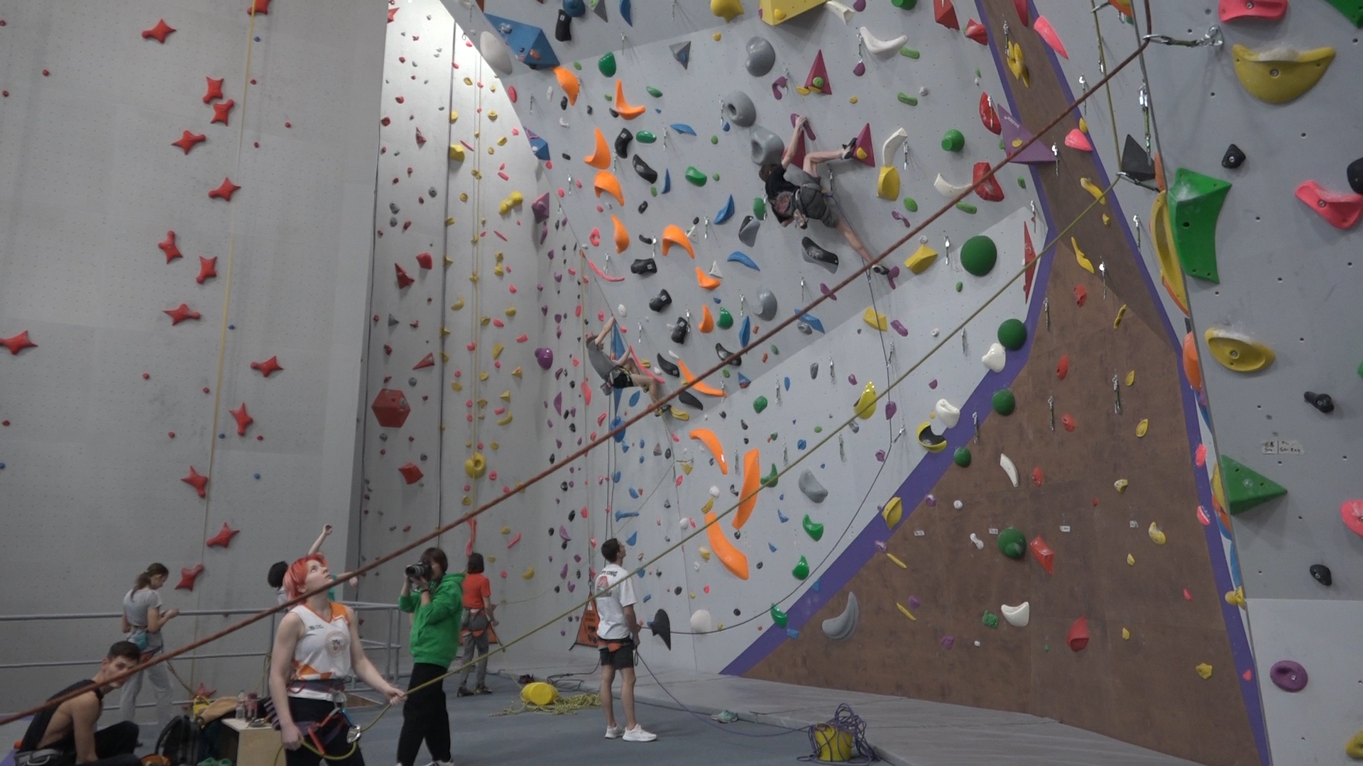 Тренировки спортсменов на новом скалодроме