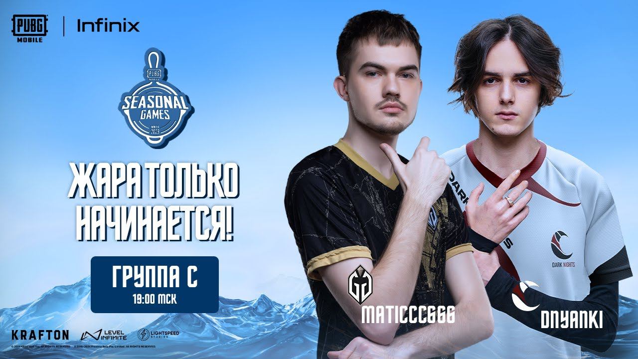 Погружаемся в динамичный Групповой Этап турнира PUBG MOBILES SEASONAL GAMES 2023 WINTER! Сегодня начинается битва среди команд Группы C. Подготовьтесь к захватывающим сражениям и стратегическим ходам! Присоединяйтесь к трансляции сейчас и не упустите ни одного момента напряженной борьбы на поле боя PUBG MOBILE! Призовой фонд 15 000 USD + 4 инвайт слота на PMSL Qualifiers 2024 Дополнительные награды 1 место - 5 смартфонов Infinix GT 10 PRO - 2-5 места - по 5 смартфонов Infinix Hot 40 PRO Даты Групповой этап: 23-26 декабря 2023 Финал: 5-7 января 2024 Призовой фонд: 15 000 USD Время: 19:00 по МСК Список команд группы C: TAJ ESPORTS PRAGA PIONER NOMAD KNIGHTS NEW HARD MONES HEAVENLY SPIRITS WARM XS GAMING GAIMIN GLADIATORS FIDAIN TEAM TITAN GAMING NA PAPAY GAME SQUAD FACELESS DARK NIGHTS TEAM DEUS #PUBGMOBILE #PUBGM #PMSG2023 Следи за нами в социальных сетях: ВКонтакте: https://vk.com/pubgmobile YouTube: https://www.youtube.com/c/pubgmobile_cis Instagram: https://www.instagram.com/pubgmcis/ Telegram: https://t.me/official_pubgmobile_ru TikTok: https://www.tiktok.com/@pubgmobilecis Discord: https://discord.gg/pubgmobilecis