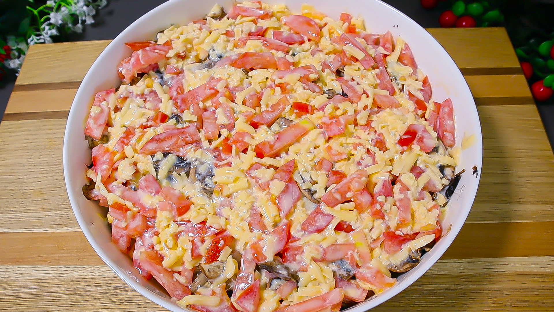Рецепт простого и очень вкусного ужина с курицей. Добрый день! Сегодня приготовим простой и вкусный ужин с курицей.. Простой рецепт ужина, готовим очень быстро и не требует особого внимания. Ингредиенты: - Всем привет! Сегодня приготовим простой и вкусный ужин. - куриное филе 1 шт. - соль, перец по вкусу. - 3 ст.л. растительного масла. - лук репчатый 1 шт. - смазываем растительным маслом. - 400г картофеля. - соль, перец по вкусу. - 2 ст.л. растительного масла. - 250г. грибов. - накрываем влажным пергаментом и фольгой. - Выпекать 25 минут при 200 ° C. - 100 г твердого сыра. - помидор 1 шт. - 2 ст.л. майонеза или белого йогурта. - яйцо 1 шт. - запекать еще 10 минут при 180 ° C. Наш ужин готов! Если понравилось поставьте лайк, подпишитесь и напишите комментарий!