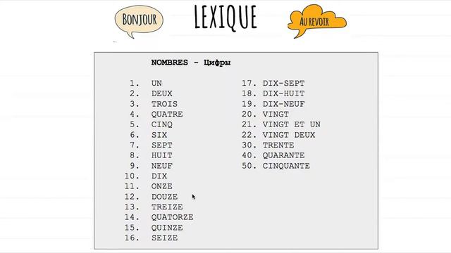 День 2. Лексика - nombres 1-50.