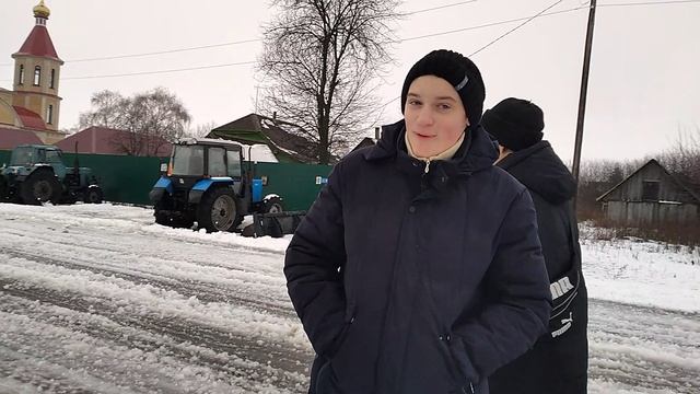 Два трактора ? ? и два тракториста, рядом с храмом в Землянском