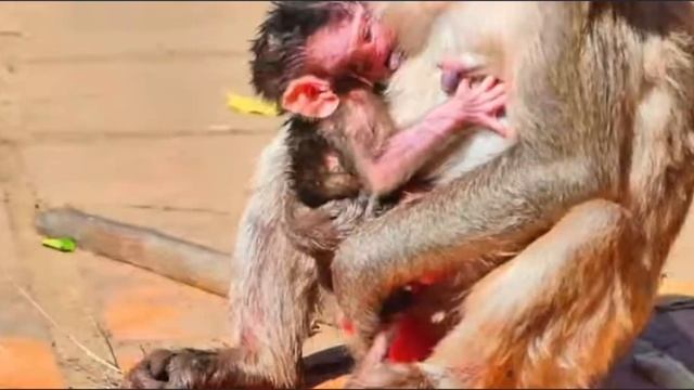 Детёныш макаки потерял грудь и потом долго искал.