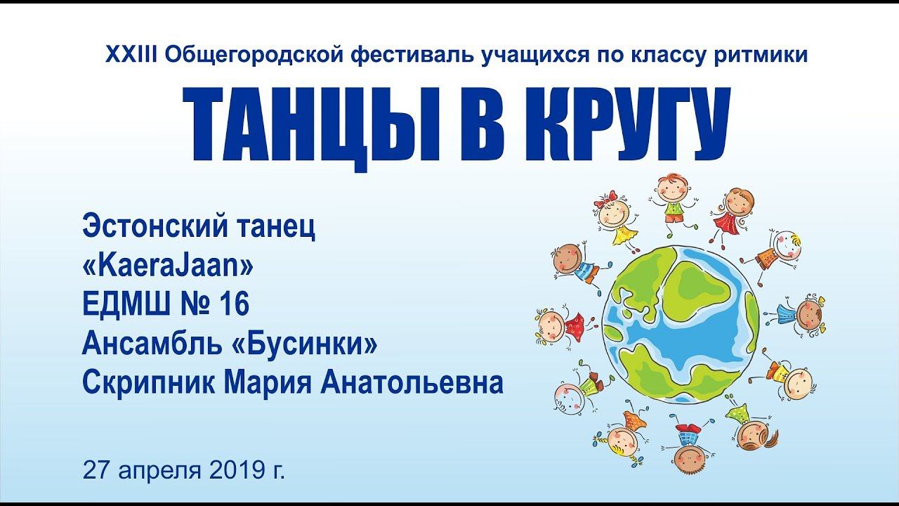 Эстонский танец «KaeraJaan» ЕДМШ № 16 ансамбль «Бусинки» Скрипник Мария Анатольевна XXIII Общегородской фестиваль учащихся школ искусств «ТАНЦЫ В КРУГУ» «КАЛЕЙДОСКОП РИТМОВ» 27 апреля 2019 года
