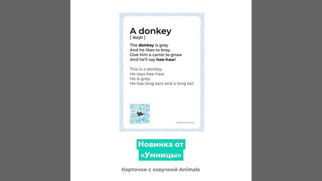 Необычный продукт для знакомства малышей с английским языком. Простая методика, интересные игры, а информацию на карточках озвучил носитель языка (аудиоматериалы доступны по QR-коду). Ребёнок узнает, как на английском языке называются животные, сможет описать их и попробует повторять звукоподражания. Это отличный комплект как для начала занятий, так и для совмещения с Умница. Skylark English.