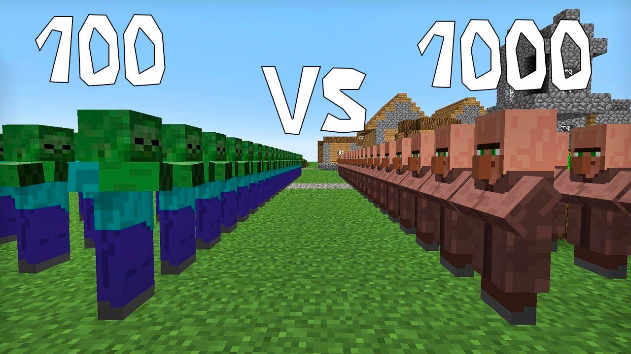 1000 ЖИТЕЛЕЙ ПРОТИВ 100 ЗОМБИ В МАЙНКРАФТ! У ЗОМБИ НЕТ ШАНСОВ