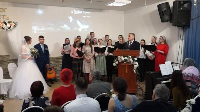 Дайте руки друг другу, отныне вдвоем озаренные счастьем пойдете вы вместе, путь далек перед вами