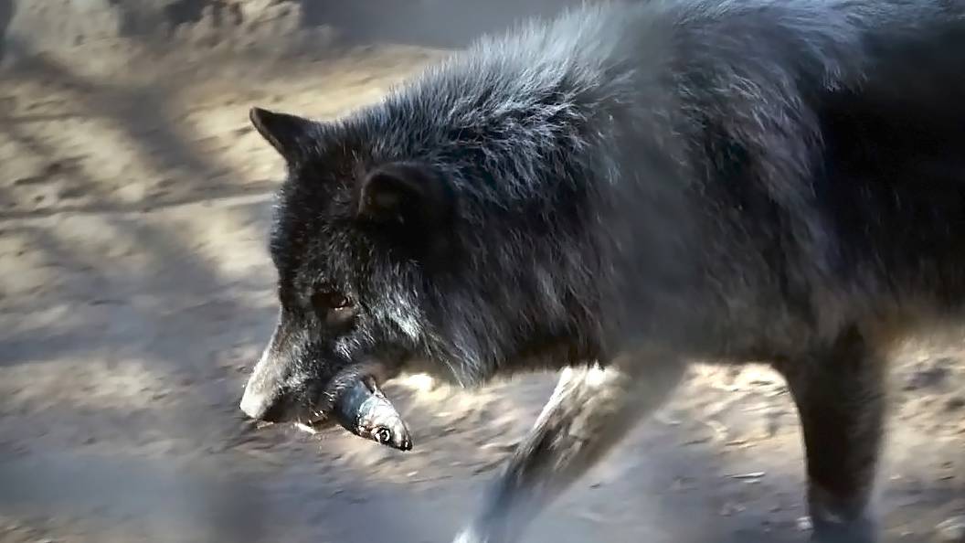 Черные канадские волки тоже любят рыбу, только поделить ее на всех сложно.