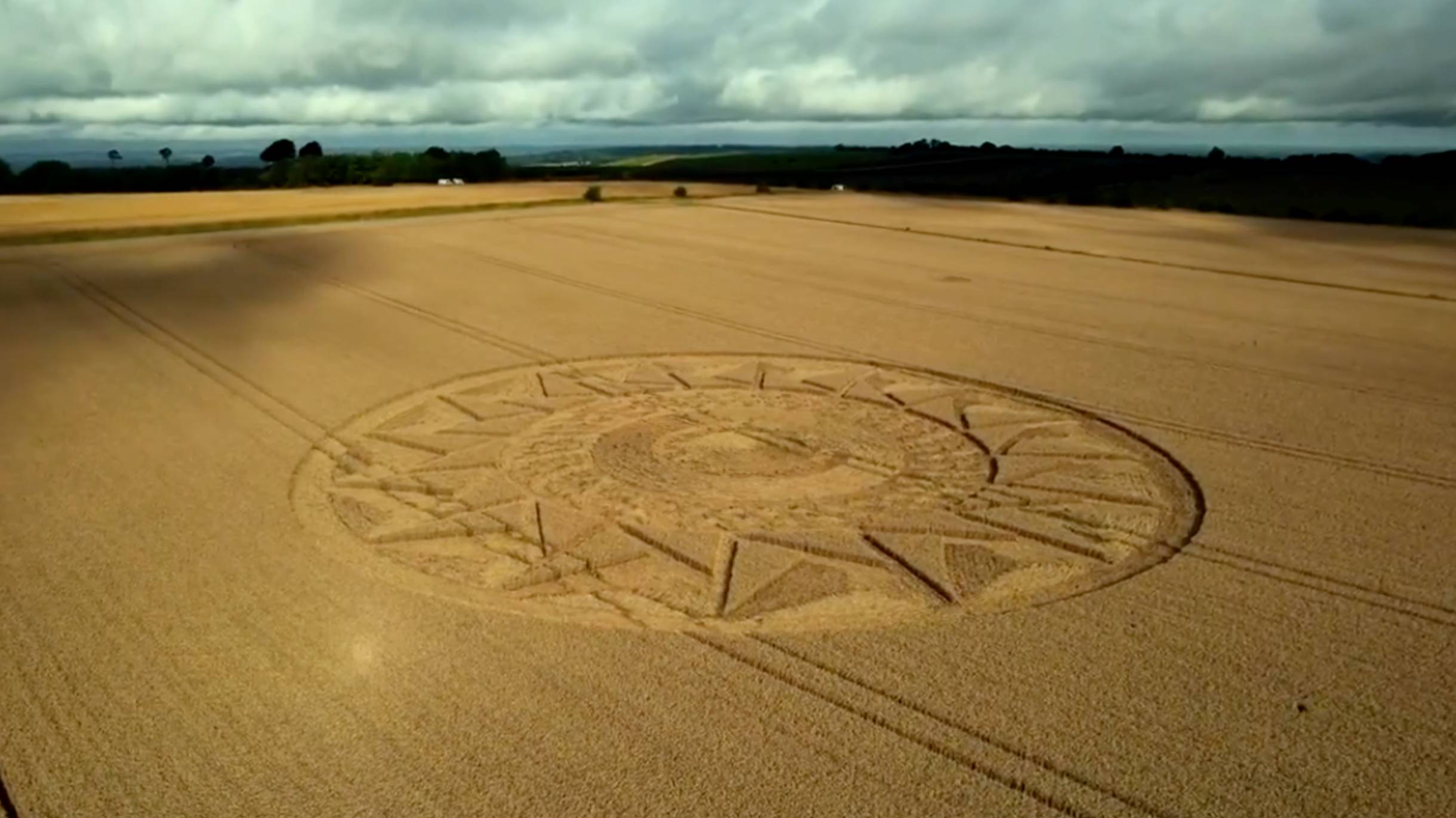 Полет дрона над кругами на полях и общий вид на формацию. EXOPEDIA.su