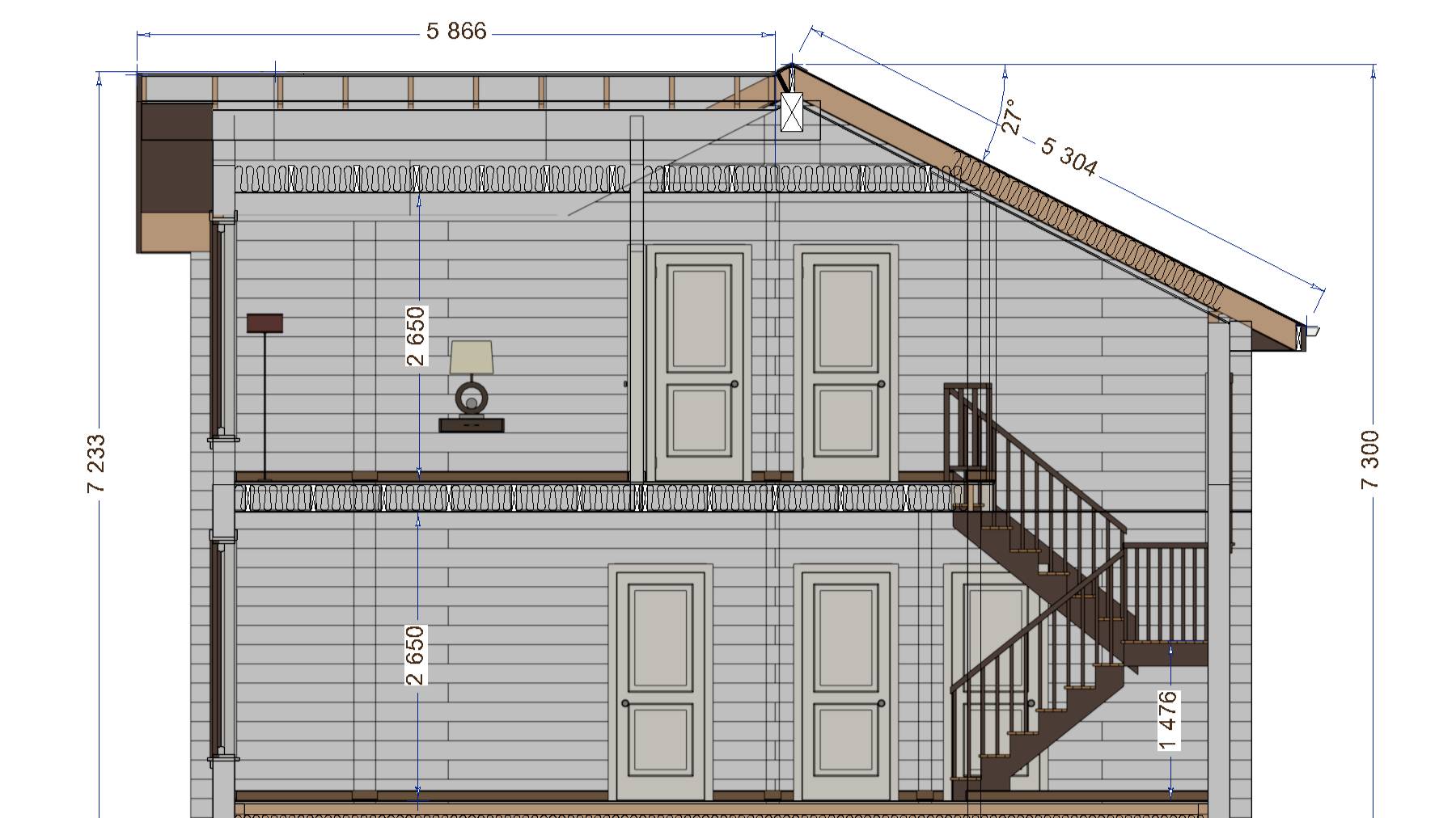 Проект духэтажного дома из клееного бруса КД167