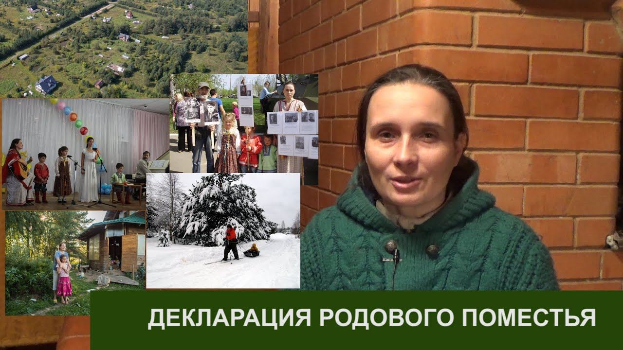 "ДЕКЛАРАЦИЯ РОДОВОГО ПОМЕСТЬЯ" Екатерина Николаевна Ивченко, основатель Родового поместья в ПРП Ковчег "Декларация родового поместья является важным посланием основателей родового поместья будущим поколениям своего рода. Наказом, идущим из народа, власть имущим всех уровней, общением с ними Не паспорт, диплом или некоторые награды, а именно такая вот декларация является главным документом человека" В.Н. Мегре "Декларация родового поместья", кн "Анаста" серияи "Звенящие Кедры России" Акцент ТВ