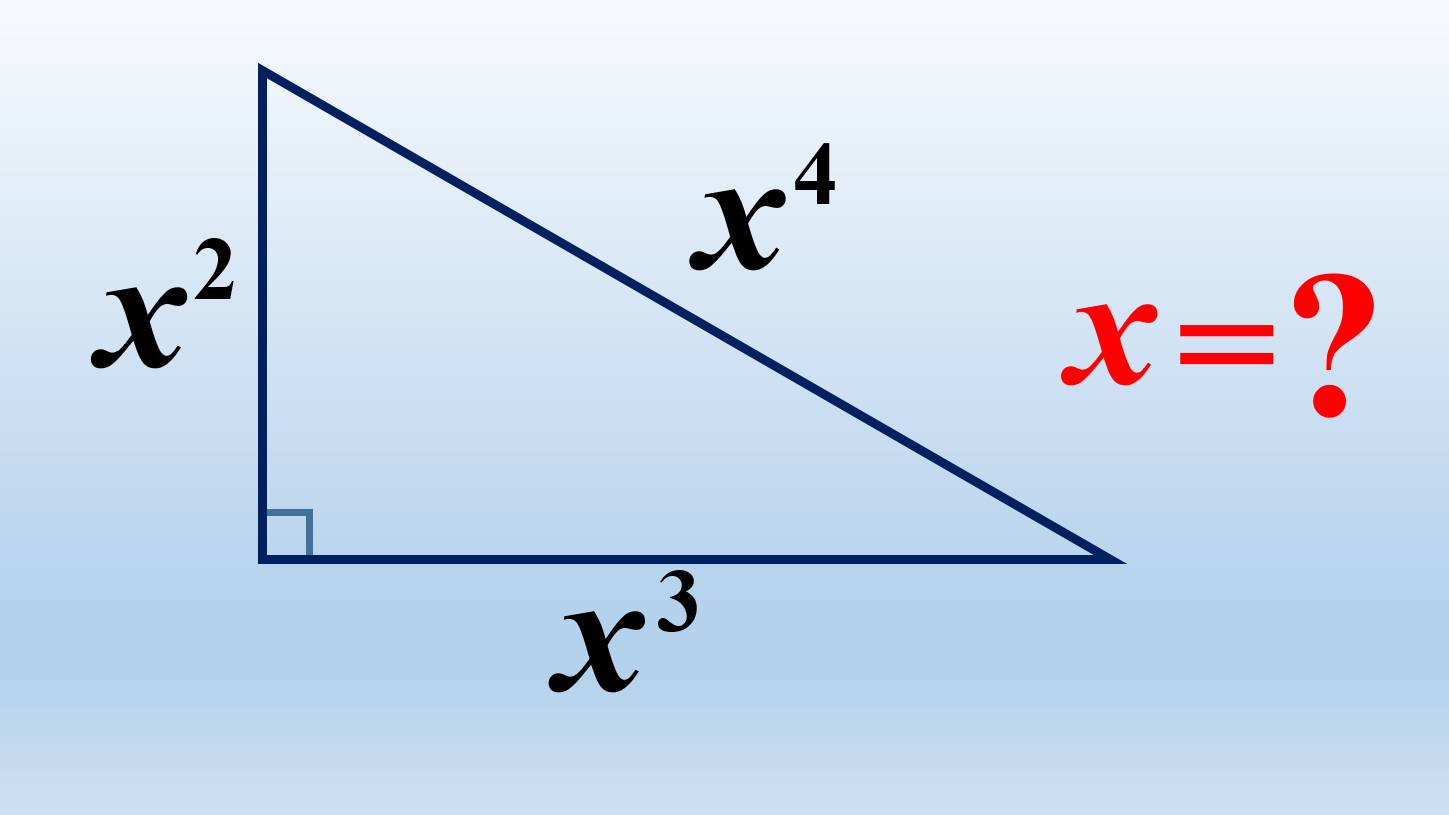 Геометрия. Если стороны прямоугольного треугольника равны x², x³, x⁴ , то каковы его стороны?