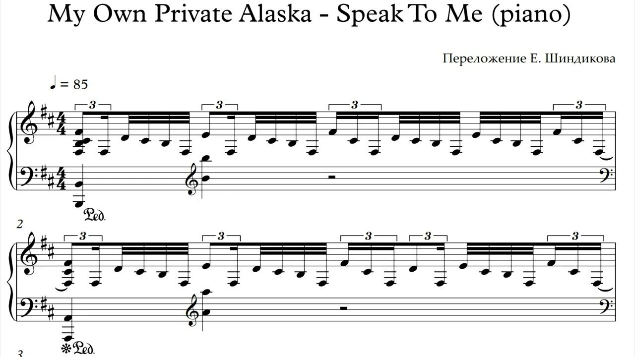 Ноты My Own Private Alaska - Speak To Me (piano)