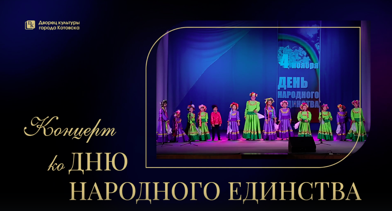 3 ноября в Большом зале Дворца культуры состоится торжественный вечер, посвящённый Дню народного единства. В концертной программе «Единая страна, единая Россия» выступят творческие коллективы и солисты Дворца культуры: народные вокальные коллективы -хор ветеранов труда, ансамбль русской песни «Белая верба», «Родные напевы», «Ивенка», образцовые детские коллективы «Котовская задоринка», «Неразлучные друзья», народные хореографические коллективы «Ассорти», «Багира», Екатерина Краснова, Ирина Иванова, Денис Нацибулин. Нас всех объединяет Россия, и пусть любовь к нашему Отечеству послужит общему благу. Россия — это мы! Мы — это Россия!