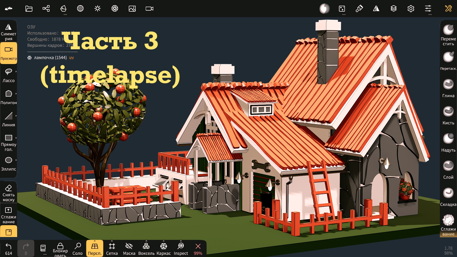 Ч.3 (timelapse). Как сделать домик в Nomad Sculpt на iPad. Уроки 3д.
