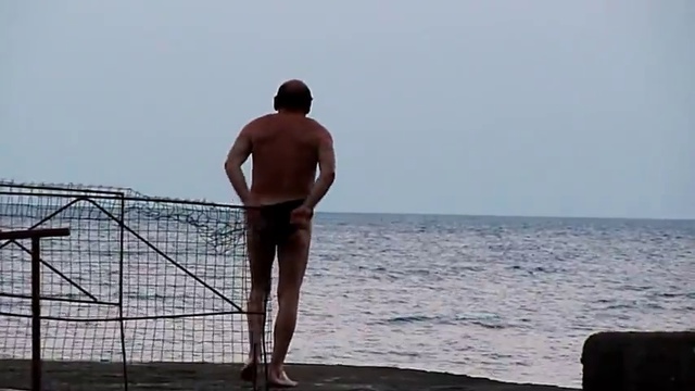 Море. Пьяный мужик и волнорез.