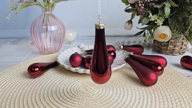 Набор ёлочных украшений ЭЛЕГАНТНЫЕ КАПЛИ, стекло, бордовые, матовые и глянцевые, 011043/1001401