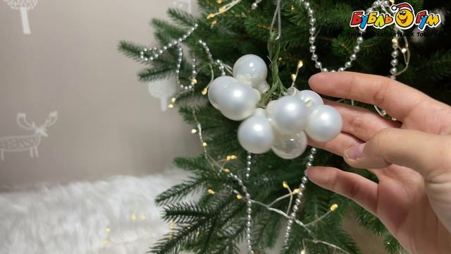 337164 Елочное украшение Гроздь шаров стеклянное белое 10шт 1см