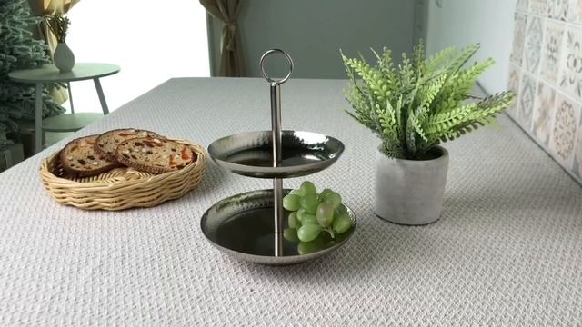 Сервировочная этажерка ПЬЯТТО двухъярусная, металл, серебряный, 21 см, A67102880