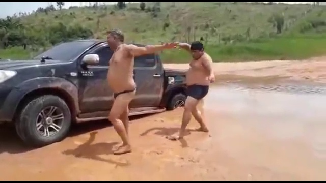 Бразильские парни пустились в пляс, когда застряли на пикапе в грязи. #прикол #танцы #фейл #грязь