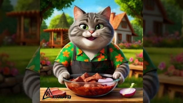 Весёлый котик показывает как готовить используя реальные рецепты. Qr code с полным рецептом приготовления в конце.