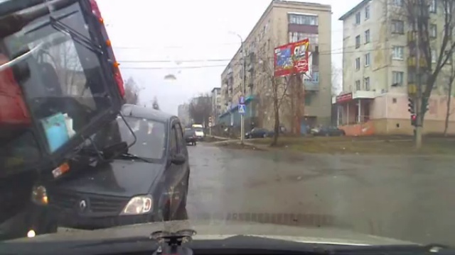 Трактор прижал Dacia Logan на перекрестке…