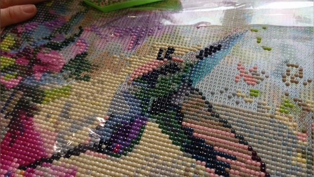 Алмазная мозаика( алмазная вышивка). Птичка на цветах. В процессе. Готова 1/3.