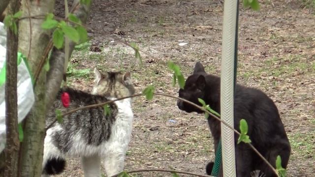 Наглый полосато белый кот посещает двор по несколько раз в день. Пометил ВСЁ. Исчезает при виде человека или открывании двери. Черный столовался всю зиму. С защитой территории не справился. Был изгнан кошкой. Кошка Пельмешка отдала своё предпочтение черно белому коту. Нет в кадре. Черно белый приковылял в марте на трех лапах только один раз. Конкретно покалечил этих двух претендентов. Итог 5 котят. Четыре копии отца с вариациями и один черный. Мать у кошки была черной масти. #коты #кошки #мартовскиекоты #котята