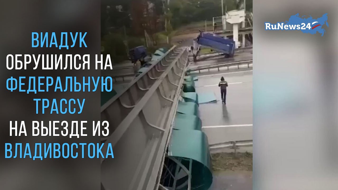 Под Владивостоком из-за самосвала виадук упал на трассу, перегородив движение