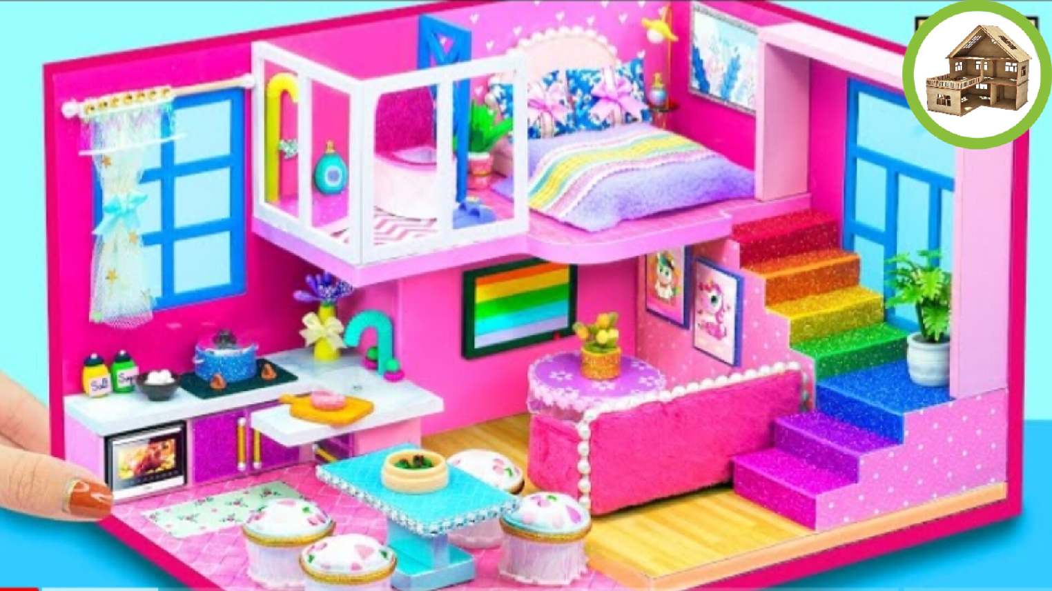 Удивительна красивая миниатюрная квартира с четырьмя розовыми комнатами для семьи из картона /242