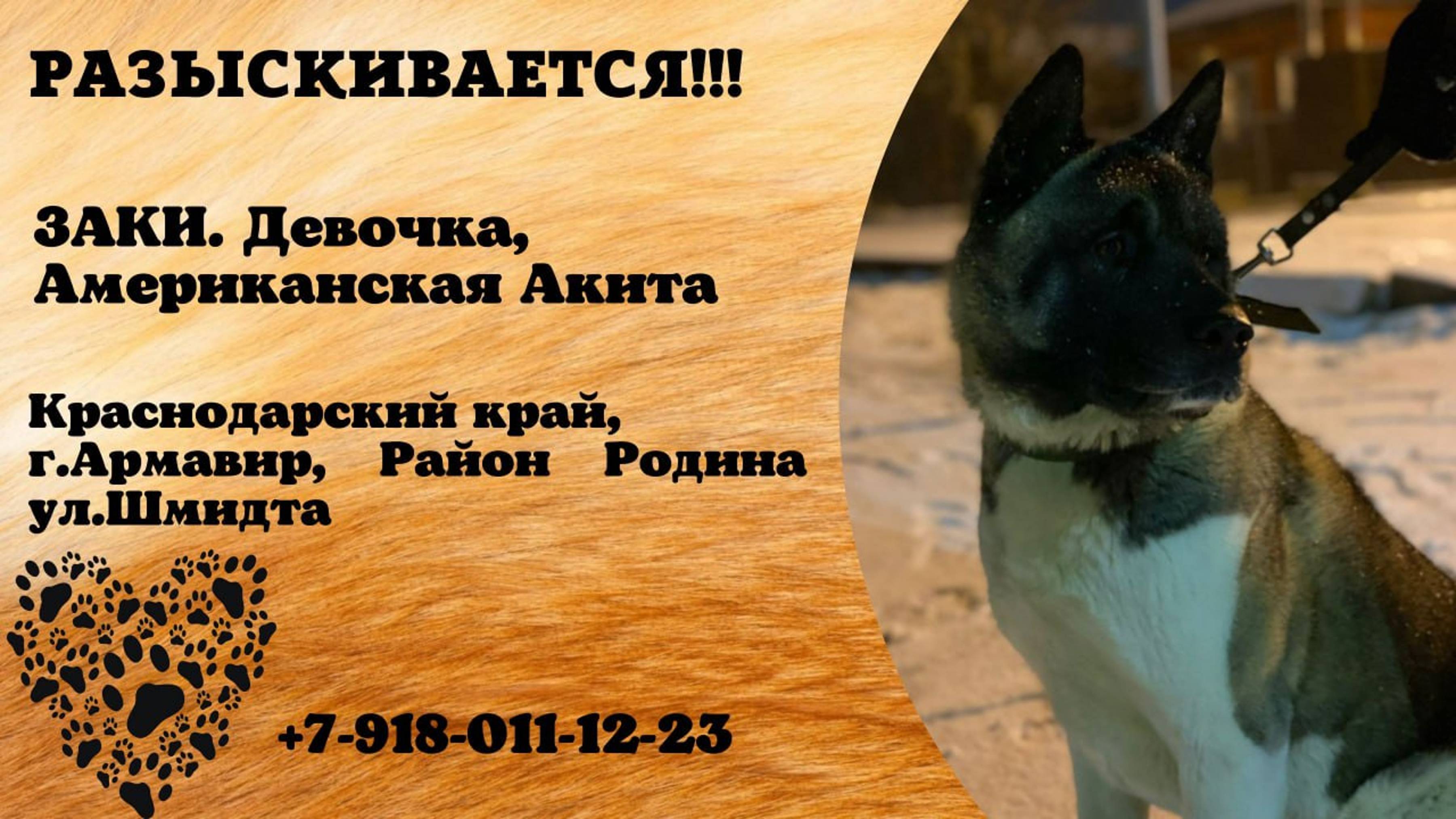 Пропала собака! ЗАКИ. Американская акита. Краснодарский край, г. Армавир
