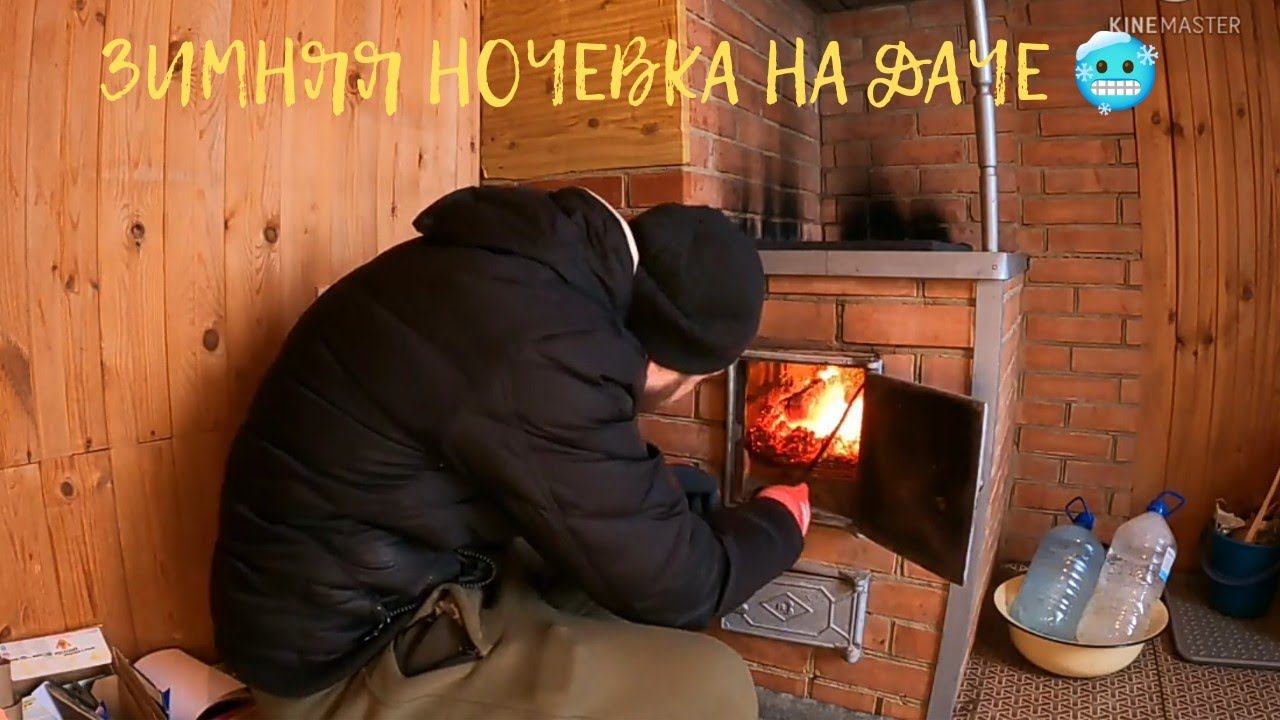 Зимняя ночевка на даче. Топлю дом. Топлю баню.