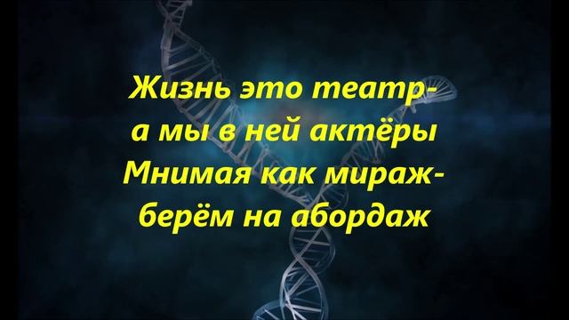В жизни нашей у всех людей Интересен путь- в этом суть В каждом взлёте в каждом мгновении Находим смысл в каждом движении Припев: Жизнь это театр- а мы в ней актёры Мнимая как мираж- берём на абордаж Надо нам принять и его завоевать Этот грешный мир дуэль или турнир Сцена нашей жизни мимолётна Каждый день как новый сюжет Мы играем роли от заката до рассвета В этом смысле жизни наш секрет Припев: Жизнь это театр- а мы в ней актёры Мнимая как мираж- берём на абордаж Надо нам принять и его завоевать Этот грешный мир дуэль или турнир В этой пьесе нет репетиций Каждая миг на вес золота Проигравший будет забытым А победитель идёт на пьедестал Припев: Жизнь это театр- а мы в ней актёры Мнимая как мираж- берём на абордаж Надо нам принять и его завоевать Этот грешный мир дуэль или турнир