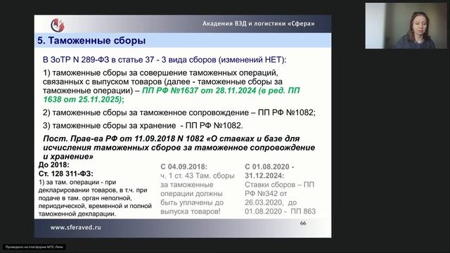 Таможенные сборы в РФ. Новые ставки с 2026 года Фрагмент лекционного занятия по теме "Таможенные платежи. Таможенные сборы в РФ. Новые ставки с 2026 года. В видео разобраны виды таможенных сборов в РФ , и в частности ставки сборов за совершение таможенных операций вступившие в силу с 01.01.2026 г. Подготовлено Терешенковой А.Ю. по заказу для Академия ВЭД и Логистики «СФЕРА» (С.-Петербург) Практикум включен в программу курса: − Курс Менеджер по логистике ВЭД: https://sferaved.ru/lgtk01_logistika_ved_obuchenie − Курс Транспортная логистика: https://sferaved.ru/lgtk03_transportnay_logistika Заявку на курс можно подать через сайт: https://sferaved.ru/contacts или на почту sfera21vek@gmail.com Подписаться на канал: https://www.youtube.com/@SferaVED ______________________________________ Академии ВЭД и Логистики «Сфера» в социальных сетях: Страница ВКонтакте: https://vk.com/sferaved Спасибо, что посмотрели! Подписывайтесь на канал и в наши группы! https://vk.com/sferaved Ждем Вас в стенах нашего образовательного центра. Мы готовы создать программу по любому направлению обучения индивидуально для Вас или Вашей компании. Нашими специалистами принимается во внимание специфика развития и характер деятельности Вашего предприятия, а также индивидуальные пожелания заказчика. Очные (дневные и вечерние) и Дистанционные формы обучения (on-line, вебинар, дистанционные курсы). Статьи и обзоры: https://sferaved.ru/publ Календарь курсов ВЭД и стоимость: http://sferaved.ru/kursy_ved_ctoimost Консультации по ВЭД и запись на обучение: https://sferaved.ru/contacts TAM-8.6_Таможенные сборы в РФ_ТАЮ_2026_4 мин