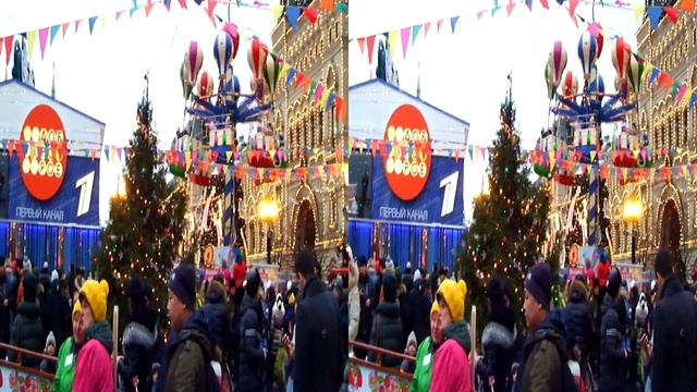 Настоящее 3d видео для очков. Красная площадь и ЦУМ 2-го января 2017 года. Празднование Нового Года! Смотреть в 3D очках LG, Samsung, Nvidia 3D Vision, анаглиф.