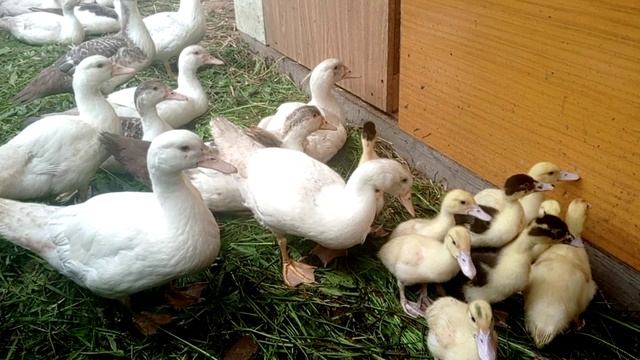 Маленькие индоутки знакомятся с взрослыми