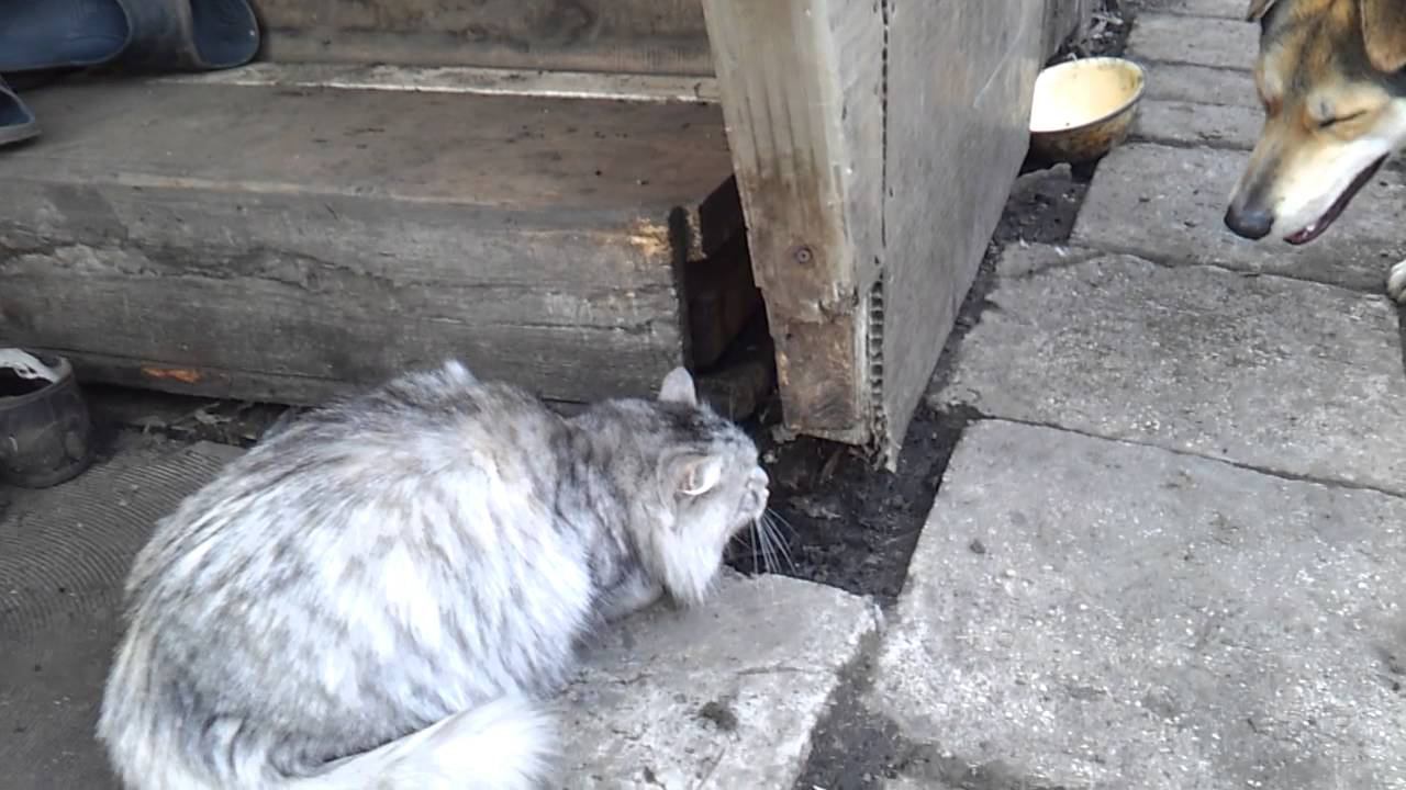 Кошка гоняет собаку. Угар!! Лютый прикол!! Ржачка полная)))