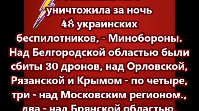 Российская ПВО уничтожила за ночь 48 украинских беспилотников