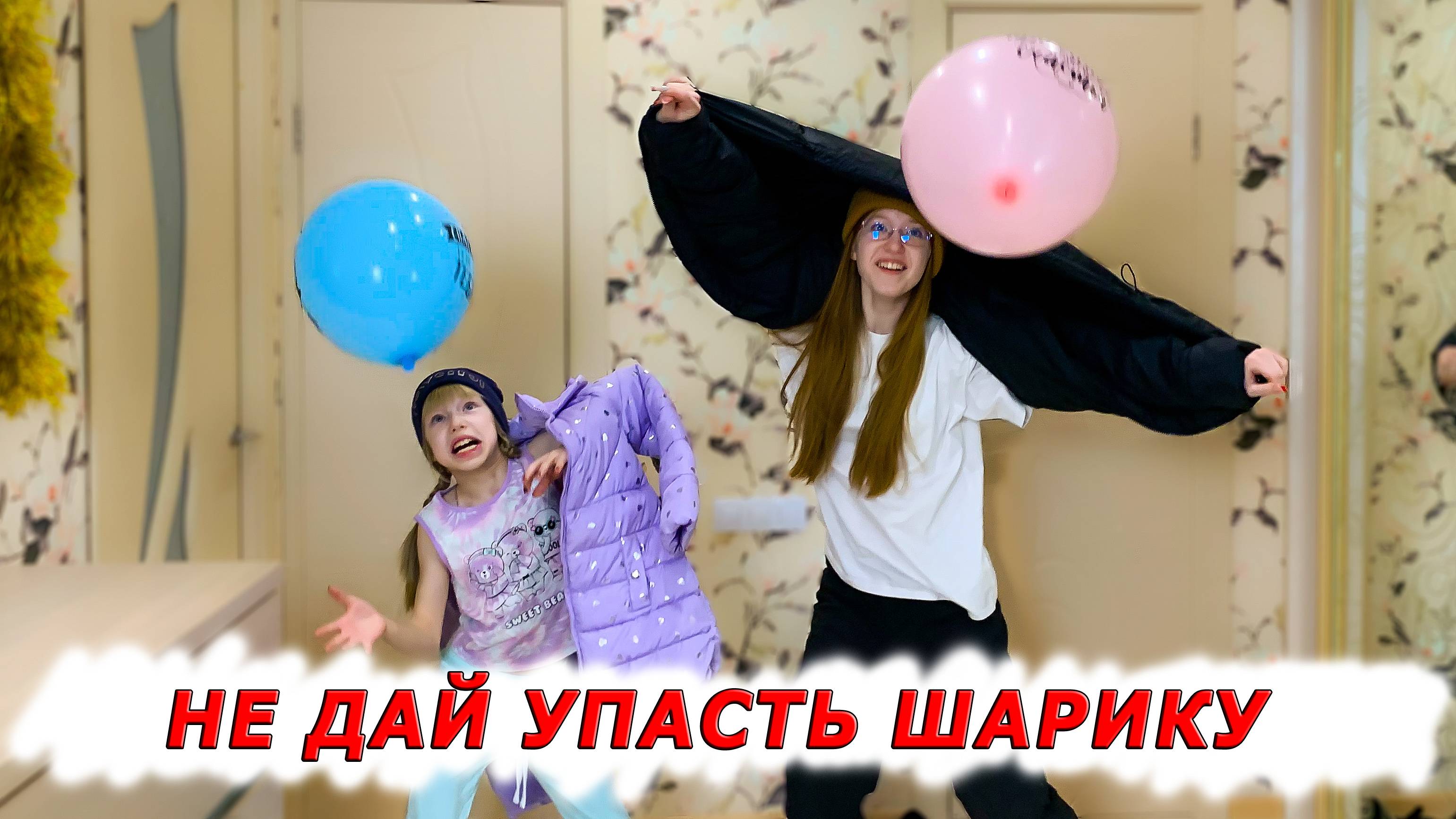 Челлендж. Успей одеться, пока не упал шарик. Настя и Вика