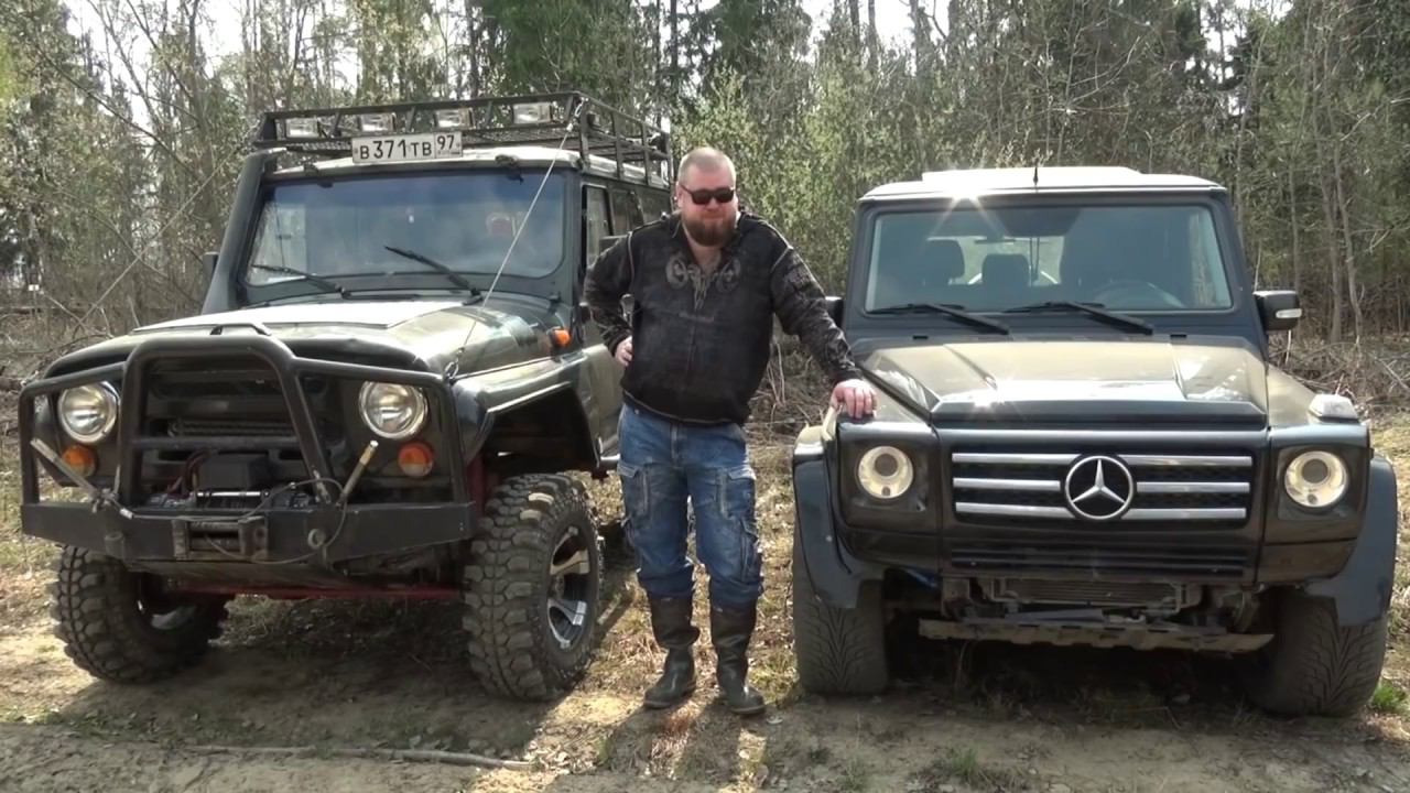 Гелендваген на 20х шоссейных колесах против УАЗ-469 на военных мостах 33 колеса.