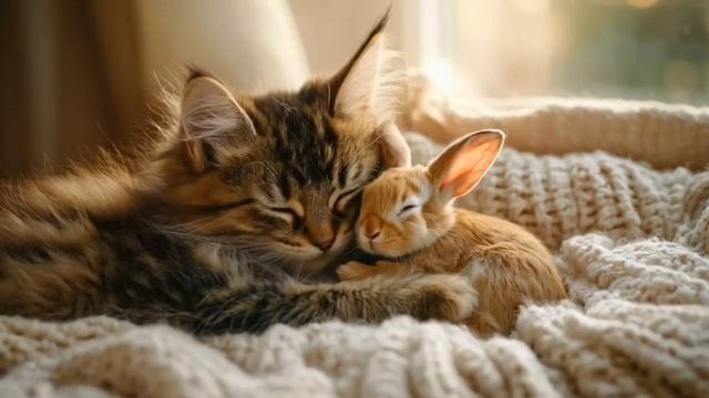 A cute kitten takes care of a little Rabbit Cult of Kittens