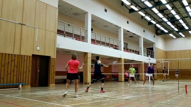 Тренировочная игра в бадминтон через сетку. Играют любители, новички и опытные бадминтонисты. Игра в Лестехе (МГУЛ ранее, сейчас называется филиалом Бауманки). Хочешь тоже играть? Приходи - https://badminton77.ru/map/4/ #badminton #badmintonlovers #badmintonrussia #lesteh #ЛесТех #бадминтон