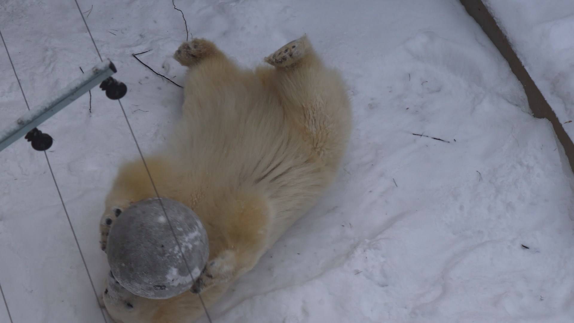 Медвежонок Стрелка нашла мячик
