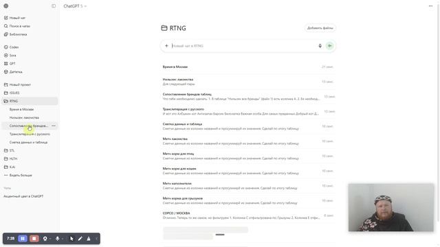 Элементы управления ChatGPT. Главный экран.