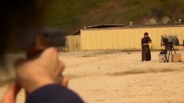Японский самурай разрубает пулю