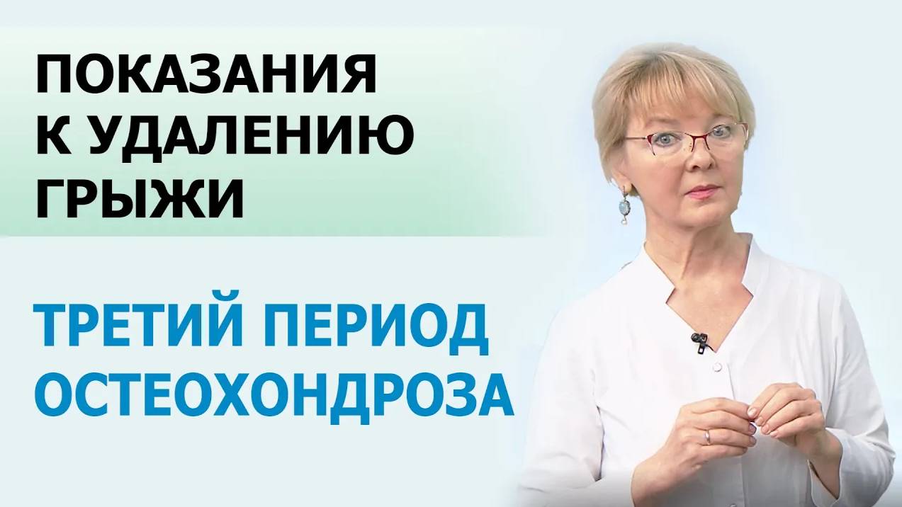 Грыжи межпозвонкового диска соответствуют 3 периоду остеохондроза. Хирургическое лечение не является заключительным этапом в терапии больных, после операции необходима комплексная профессиональная реабилитация: - устранить мышечные тиски - улучшить питания околопозвоночных тканей Содержание выпуска: 0:00 Показания к удалению межпозвонковой грыжи позвоночника 0:57 От чего зависит необходимость оперативного лечения 1:13 Абсолютные показания к удалению межпозвонковой грыжи 1:55 Относительные показания к операции 2:52 Заключительный этап – реабилитация Имеются противопоказания, необходима консультация специалиста. __________________________________ #грыжапозвоночника #протрузии #остеохондроз __________________________________ БОЛЬШЕ ПОЛЕЗНОЙ ИНФОРМАЦИИ Сайт сети клиник «Центра доктора Очеретиной» https://ocheretina.ru Бесплатная консультация по МРТ https://ocheretina.ru/consultation/ Написать лично Ирине Геннадьевне: Одноклассники https://ok.ru/ocheretina ВКонтакте https://vk.com/irina_ocheretina Телеграмм https://t.me/budem_zdorovimi ___________________________________ 📱 Телефон для записи на прием 8-800-555-10-42 (по России бесплатно) Наши клиники: ЦЕНТР ДОКТОРА ОЧЕРЕТИНОЙ: ✅ г. Москва, Брюсов переулок, д. 2/14, стр. 1 ✅ г. Москва, Островитянова, д. 6 ☎ общий тел: +7 (495) 646-11-71 ✅ г. Санкт-Петербург, Васильевский Остров, Беринга, д. 1 ☎ тел.: +7 (812) 220-10-11 ЦЕНТРЫ ВОССТАНОВИТЕЛЬНОЙ ТРАВМАТОЛОГИИ И ОРТОПЕДИИ «АРИАДНА»: ✅ г. Казань, ул. Агрономическая, д. 18 ✅ г. Казань, ул. Чистопольская 20А ☎ тел: +7 (843) 500-60-07 ✅ г. Тюмень, ул. Герцена д. 82, корп. 1 ✅ г. Тюмень, ул. Николая Зелинского, д. 24 ☎ общий тел: +7 (3452) 56-85-08 ✅ г. Курган, ул. Бурова-Петрова, д 120, стр. 1 ☎ тел.: +7 (3522) 555-888