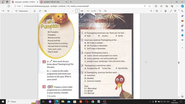 Урок английского языка в 5 классе по теме «День Благодарения». Кулеш Ольга Ивановна